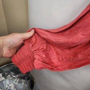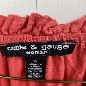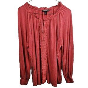 CABLE & Gauge Womens BOHO Top Size 1X Orange Lace Accent Balloon Sleeve Peasant