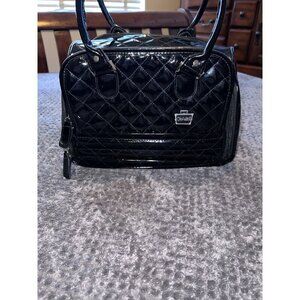 CABOODLES Black Patent Leather Carry On Makeup Bag Top Handles
