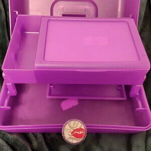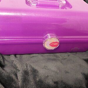 CABOODLES VINTAGE MAKEUP CASE ORGANIZER WITH MIRROR KISS LIP LACTCHE