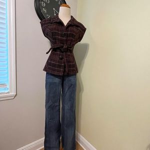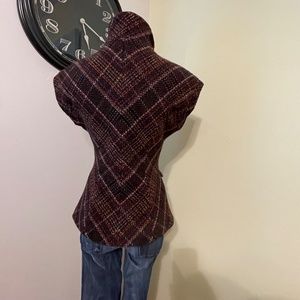 CABi Brown wool blend Tie Vest- vibrant Houndstooth woven XS