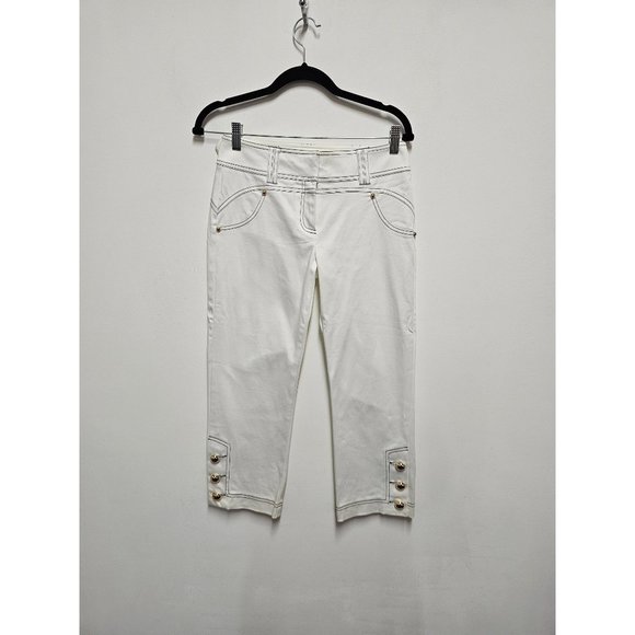 CACHÉ White Novel Capris Gold Button Size 2