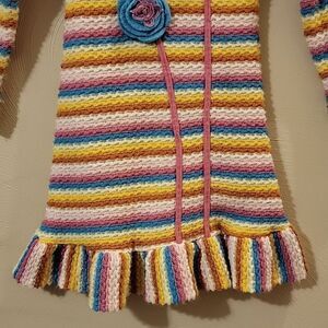 CACHCACH MULTI-COLOR STRIPED WAFFLE KNIT SWEATER DRESS WITH FLORAL APPLIQUE