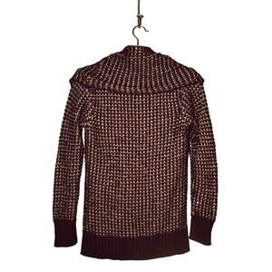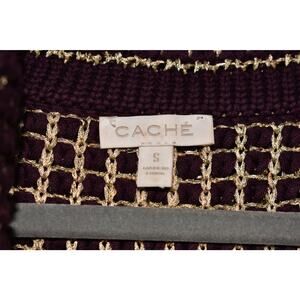 CACHE $130 Purple Gold Sequin Textured Knit Chunky Cowl Neck Sweater Small