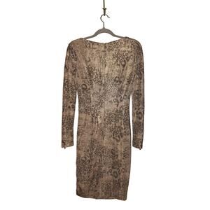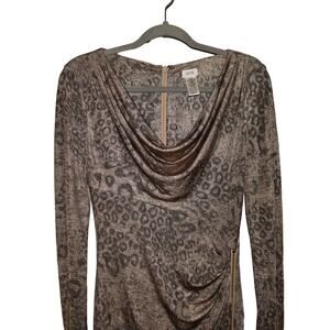 CACHE $178 Gold Gray Shimmer Animal Print Cowl Neck Sheath Dress Small