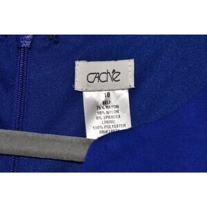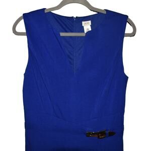 CACHE $188 Sleeveless V-Neck Midi Pencil Dress Buckle Accent Blue Size 10
