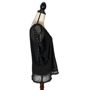 CACHE Black Silver Studded Sheer Layered Blouse Size: M