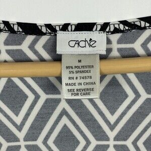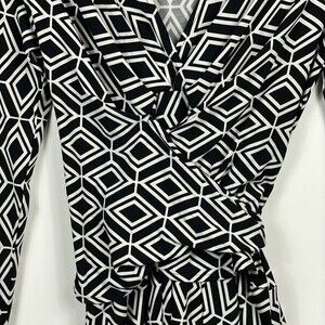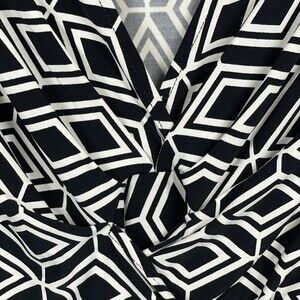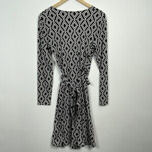 CACHE Black White Long Sleeve Front Wrap Stretch Dress Womens Sz Medium