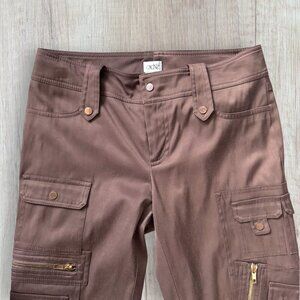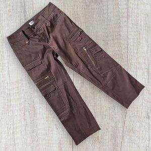 CACHE Brown Gold Zipper Cargo Cropped Capri Pants 4