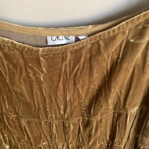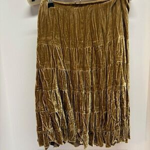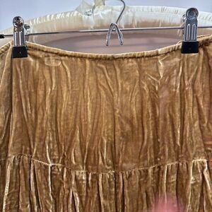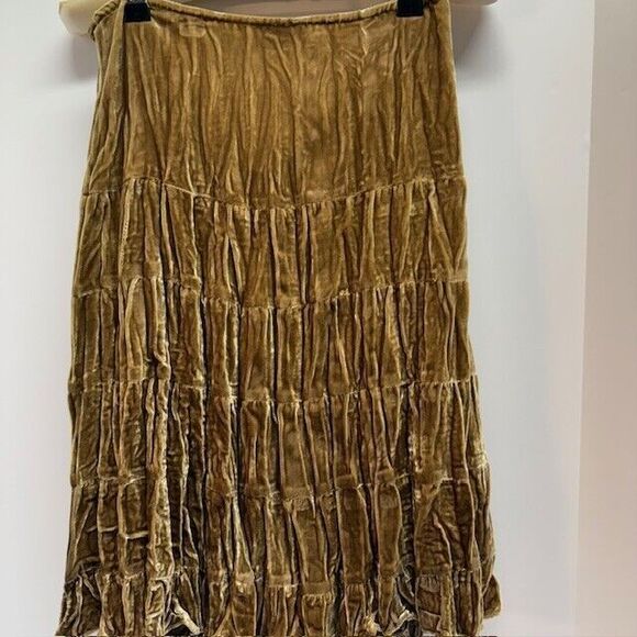 CACHE Crushed Velvet Tiered Ruffle Skirt Gold Womens Size 8 Whimsy Goth