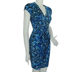 CACHE Dress, 0, Blue Snake print, Gathered hip, surplice V-neck, Cap sleeves