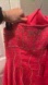 Shine in this stunning pink evening dress adorned with intricate beadwork. Low back that ties to create the best fitting. Some rhinestones and beadwork are missing (pictured).