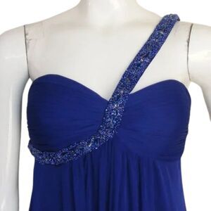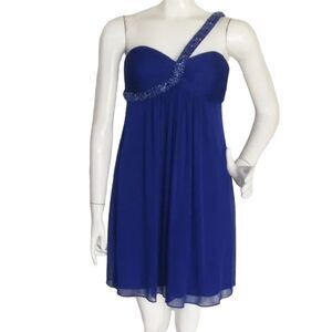 CACHE Evening Dress, XS/S, Blue, Mini, 1 strap, Beaded/Loose, Chiffon
