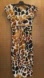 White and brown giraffe print day dress. Short cap sleeves. Has lightly padded cups. Lined. Hidden zipper. Body con dress. Polyester and spandex. Never worn. In excellent condition.