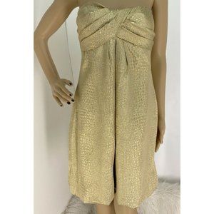CACHE GOLD METALLIC STRAPLESS EVENING COCKTAIL FORMAL BUBBLE Y2K DRESS SZE: 2