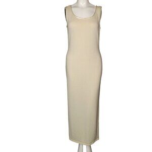 CACHE Knit Maxi Dress, M, Ivory, Satin Trim, Tank, Back Vent, Stretch, Pull over
