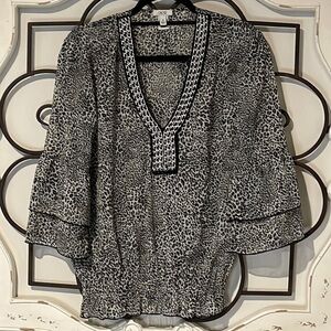 CACHE LEOPARD PRINT BELL SLEEVE BLOUSE SIZE SMALL