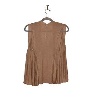 CACHE NEW $78 Sheer Ribbed Linen Blend Open Vest Top in Tan Small
