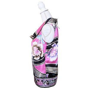 CACHE Silk Satin Top with Draped Collar in Black & Orchid Pink NWT