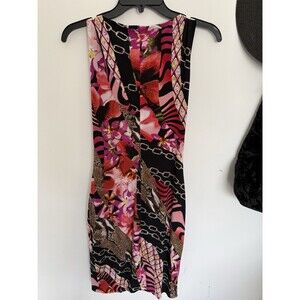 CACHE Stretch Chain Belt Animal Print Dress Size Small Above Knee Length