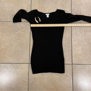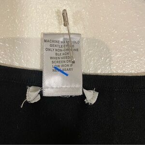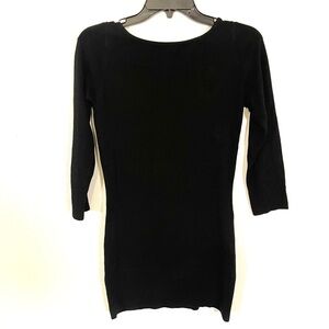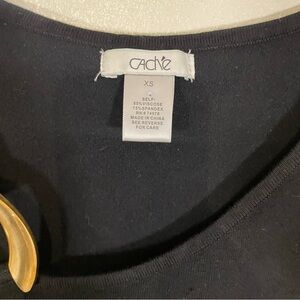 CACHE Sweater Top Gold Ring Detail 3/4 Sleeve Black Viscose Stretch Size XS