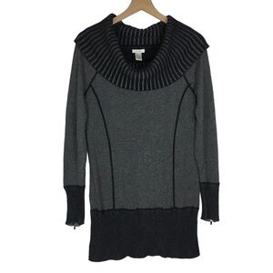 CACHE Sweater Tunic Cowl Off Shoulder Long Sleeve Ribbed Zipper Zip Cuffs Size Large