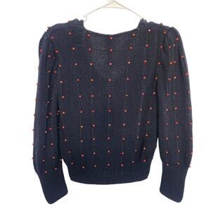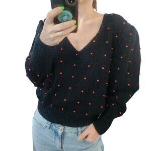 CACHE Vintage Beaded Hand Knit V Neck Sweater S/M Retro Shoulder Pads 90s 80s