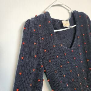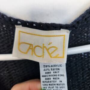 CACHE Vintage Beaded Hand Knit V Neck Sweater S/M Retro Shoulder Pads 90s 80s.