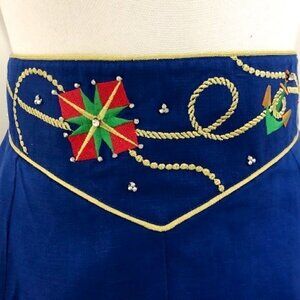 CACHE Vintage Blue Linen Pencil Skirt w/ Gold Nautical Embroidery