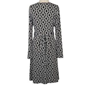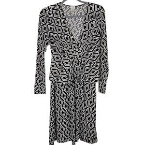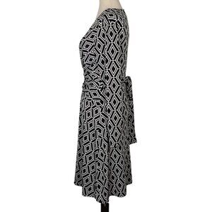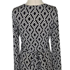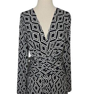 CACHE WOMEN'S Black White Geometric Wrap Waist Mini Dress Size Medium GUC