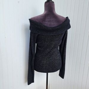CACHE Womens NAVY GOLD OFF THE SHOULDER SOFT TUNIC TOP SWEATER Nylon Stretch M