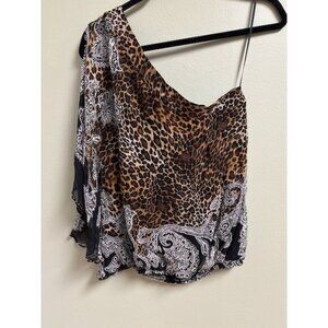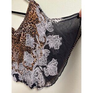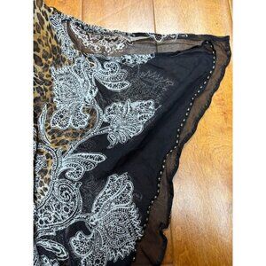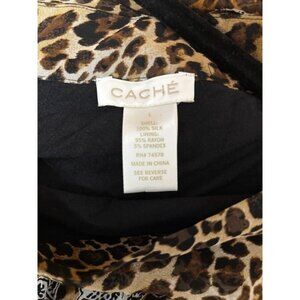 CACHE Womens Silk Animal Print Top Size L Leopard Paisley Beaded Mob Wife Chic