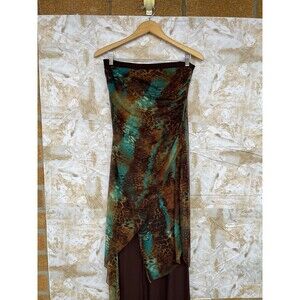 Pull up strapless jersey jumpsuit with asymmetrical mesh attached detailing , animal print , Y2K style one of a kind good condition. Stretch material