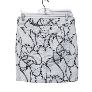 CACHE Chain Print White Denim Mini Skirt