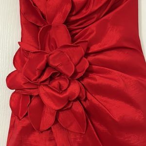 CACHE Red Strapless Ruched Pleated Flower Detail Cocktail Mini Dress in great condition!