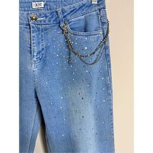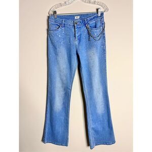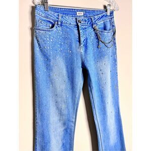 CACHE SILVER STUDDED BLUE JEANS Chain Sparkle Y2K sz 6