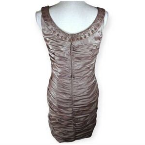 CACHET VINTAGE CHAMPAGNE PLEATED BEADED NECKLINE DRESS. SZ.8 EUC.