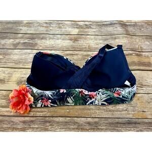 Cacique. Size 44C. Excellent condition. Navy with tropical print. Lace crisscross back. Adjustable strap. Front Closure. Lightly padded. Absolutely stunning bra.