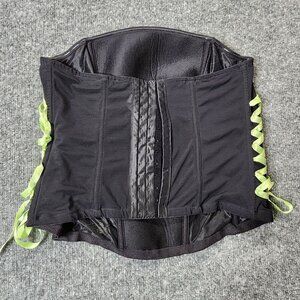 CACIQUE Embroidered Black Lime Green Coreset Lace Up Boning Size 14/16