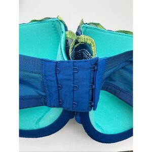 CACIQUE Intimates Bra Size 38DD Blue Green Push Up Embroidered Leaf w/ Underwire