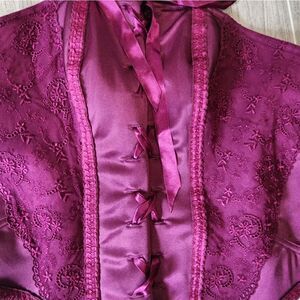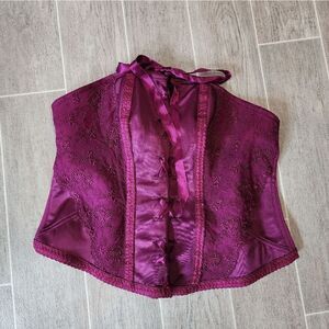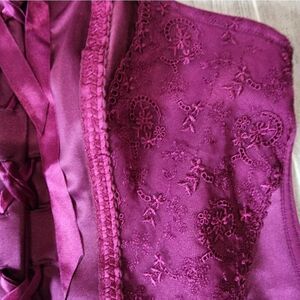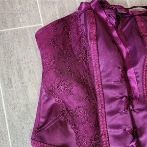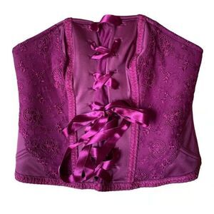 CACIQUE Purple Corset Lace Detail Size 22/24. eye hook closure in back with a lace up front. does not have any real boneing like a traditional corset. strapleass.