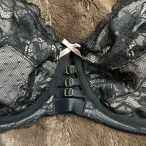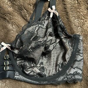 CACIQUE Unlined Curvy Balconette Black Lace Sz 38DDD