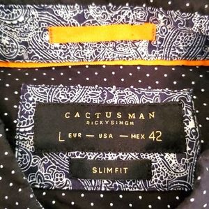 CACTUS MAN L SLIM FIT BLACK & WHITE POKADOT LONGSLEVE BUTTON UP SHIRT