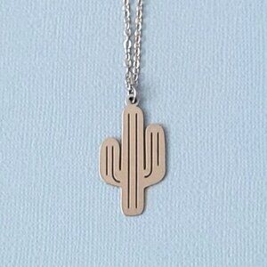 CACTUS Stainless Steel Charm Chain Necklace 24" Arizona Western Cowgirl