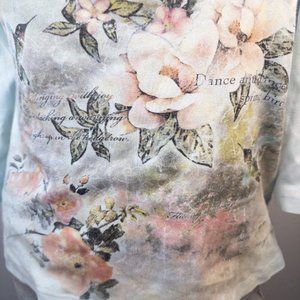 CACTUS Womens Size Medium Shirt Tee Blue Hummingbird Floral 3/4 Sleeve Y2K Top