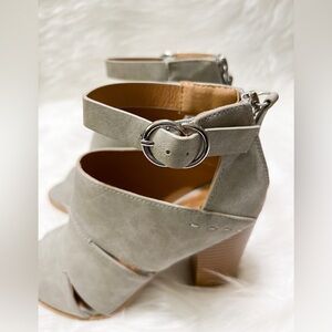 CADENCE Peep Toe Strappy Heels Buckle Grey Size 5.5
