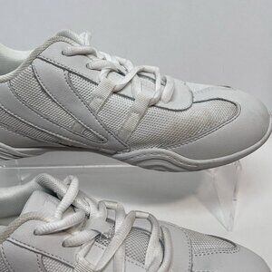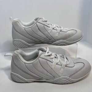 White cheer shoes. Light areas showing wear. Otherwise clean and in good condition. Size 38 is a Womens size 7.
