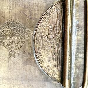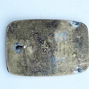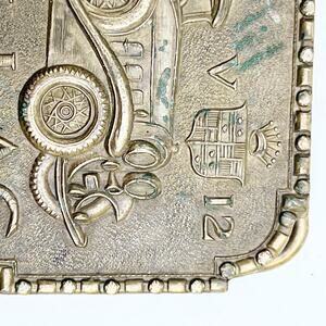 CADILLAC V12 belt buckle vintage brass England Bay State Jewelry Patina