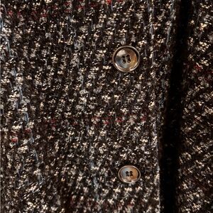 Elegant vintage Caesar Uomo Italia coat with a textured tweed design. Features a blend of black and gray. Ideal for a chic appearance.