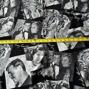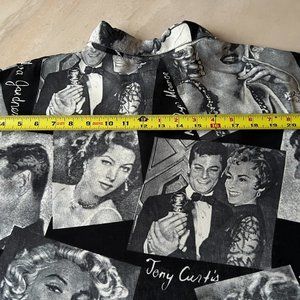 This classic HOLLYWOOD movie star print shirt is a must for any movie aficionado. Designed in Italy in the 1980's, in size 2XL with button closure with collar. Shirt features your favorite movie stars in black and white. Clark Gable, Marilyn Monroe, Ava Gardner, Tony Curtis and Janet Leigh to name a few. It is made from high quality rayon fabric, comfortable and durable and has long sleeves.. Makes a statement. Unique, new wave shirt, vintage Hollywood all the way. In excellent condition.