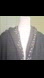 CAITE Athleta Dark gray, embroidered open-front cardigan sweater with a hood and two front pockets. It has an asymmetrical cut.